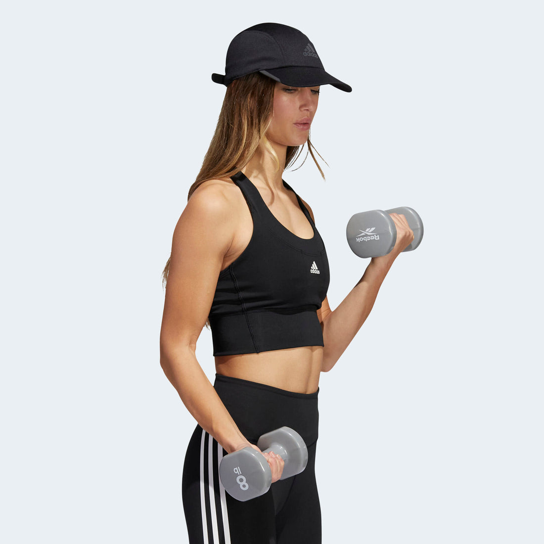 חזיית ספורט ריצה של אדידס עם המבנה התומך שלו שמסתגל לגוף שלך בהתאמה הדוקה ונמתחת? שלא...